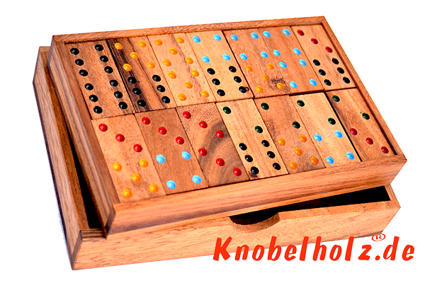 Domino mit 6 Augen in der Holzbox...etwas kleinere Steine aber genug für 4 Personen Domino zu spielen..