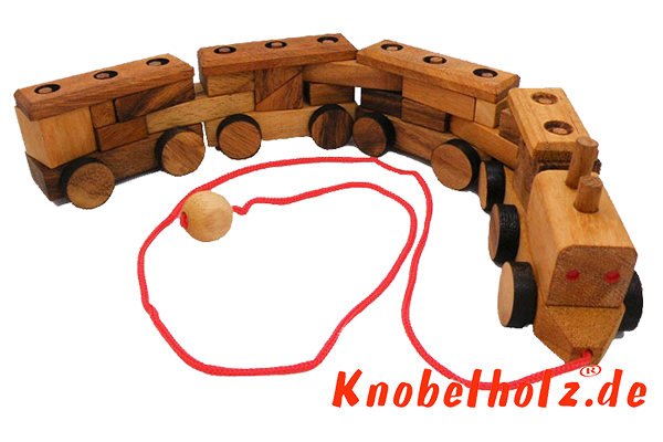Puzzle Train Holzeisenbahn Puzzle 3D für Kinder zum hinterher ziehen in den Maßen 5,0 x 30,0 x 8,5 cm, samanea wood brain teaser