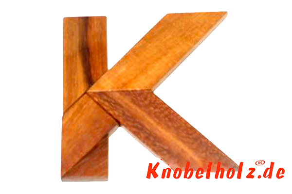 K Puzzle aus Holz ist ein spannendes Buchstaben Tangram. Lege das K versuche es mit den paar Teilen zu schaffen ... dann versuche andere Figuren und Buchstaben zu puzzlen